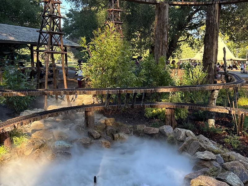 Find out what's behind the whimsical, misty miniature Santa Fe Railroad trestles outside.
