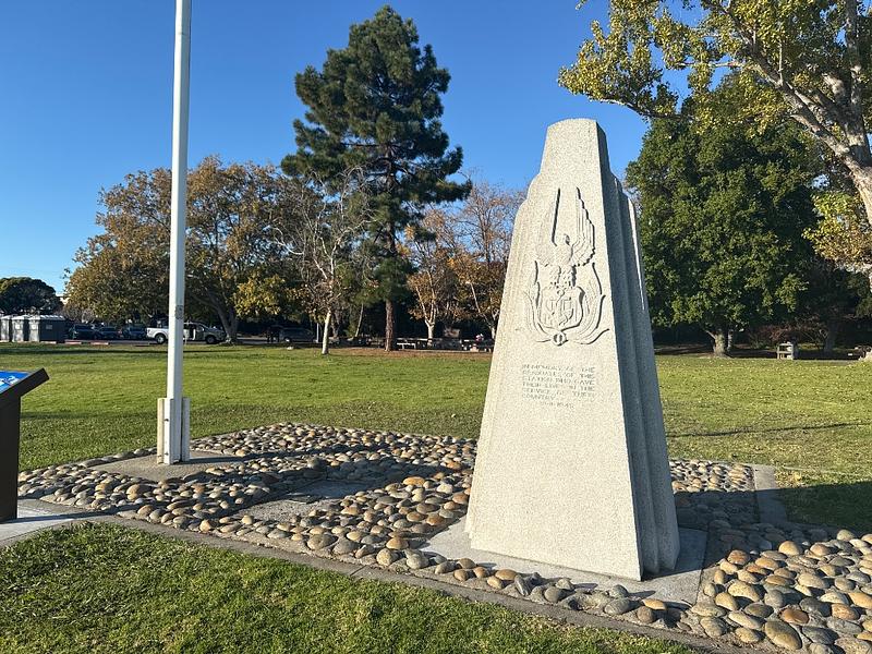 A granite memorial dedicated to Alameda residents who fell in WWII, located on the former site of the "Coney Island of the West."