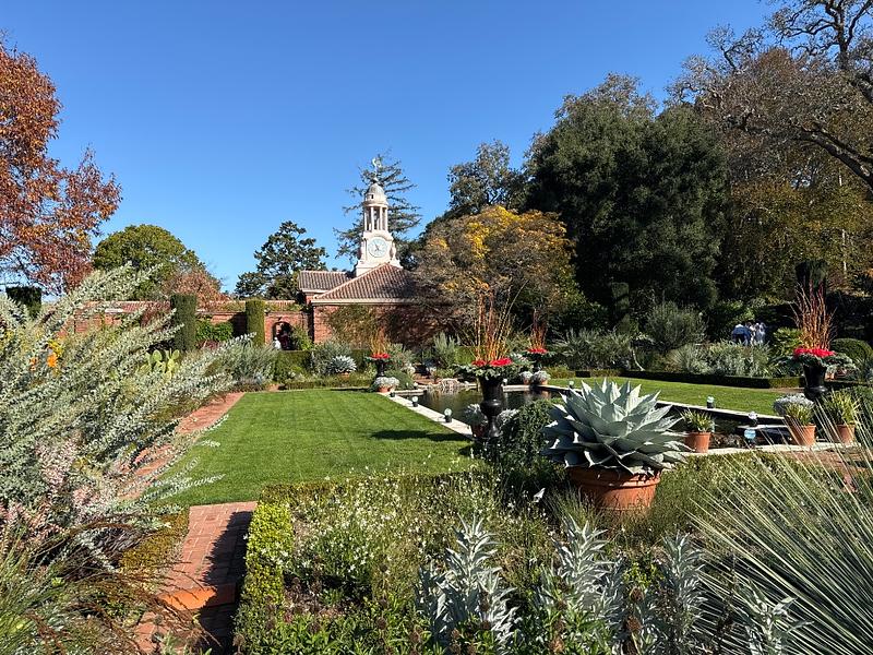 The elegant gardens and clock tower marking the end of a vast aqueduct bringing water from Yosemite.