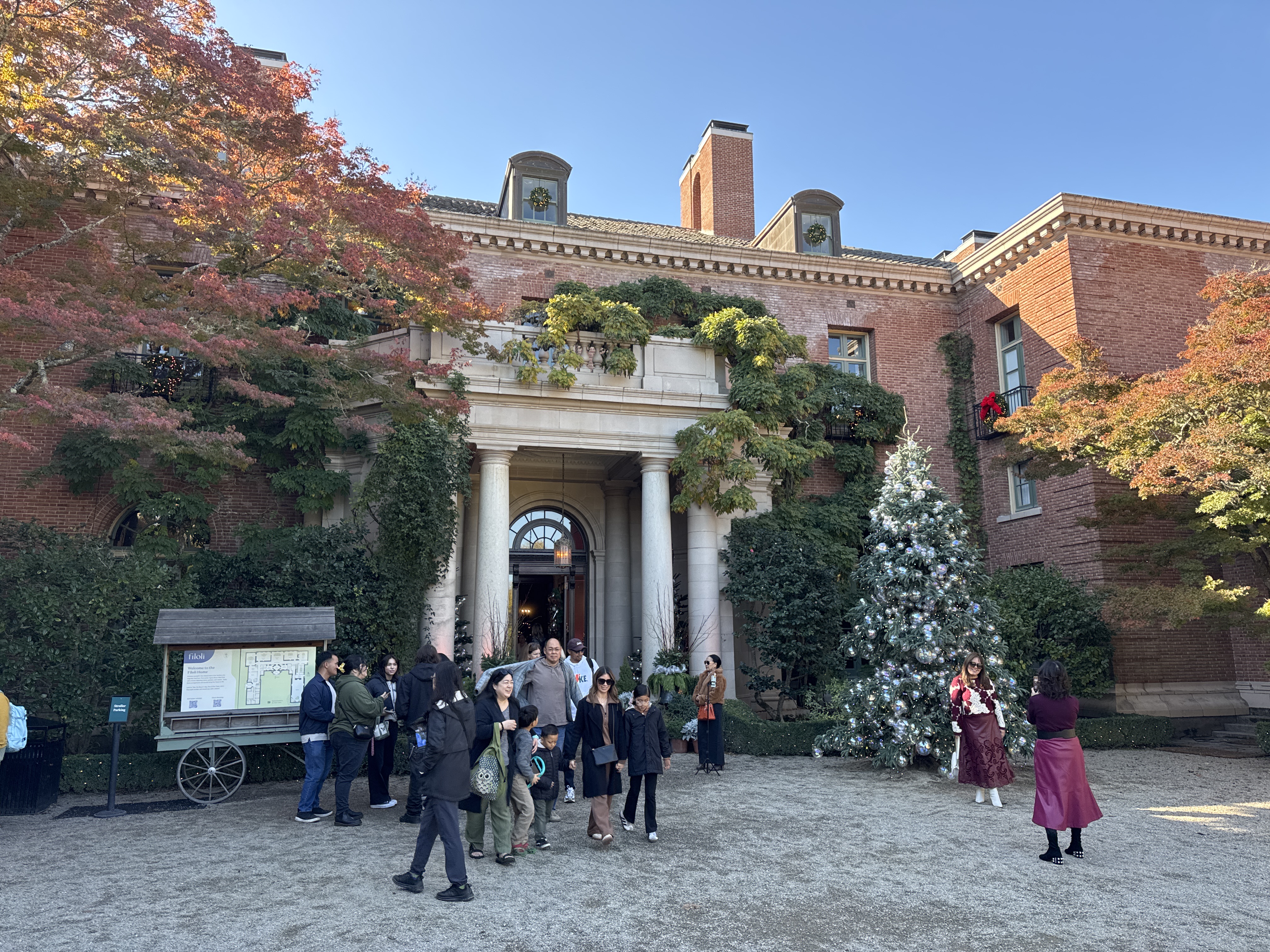 The estate eventually passed to the Roth family in 1937, who continued to preserve and enhance it for over 40 years. In 1975, the Roth family generously donated Filoli to the National Trust for Historic Preservation, ensuring its long-term preservation and public access. Today, it operates as a vibrant cultural institution, hosting educational programs, art exhibitions, and special events throughout the year. The presence of the decorated tree and subtle festive adornments suggests that the estate might be celebrating a seasonal event, such as its popular "Holidays at Filoli," which transforms the estate into a festive wonderland.