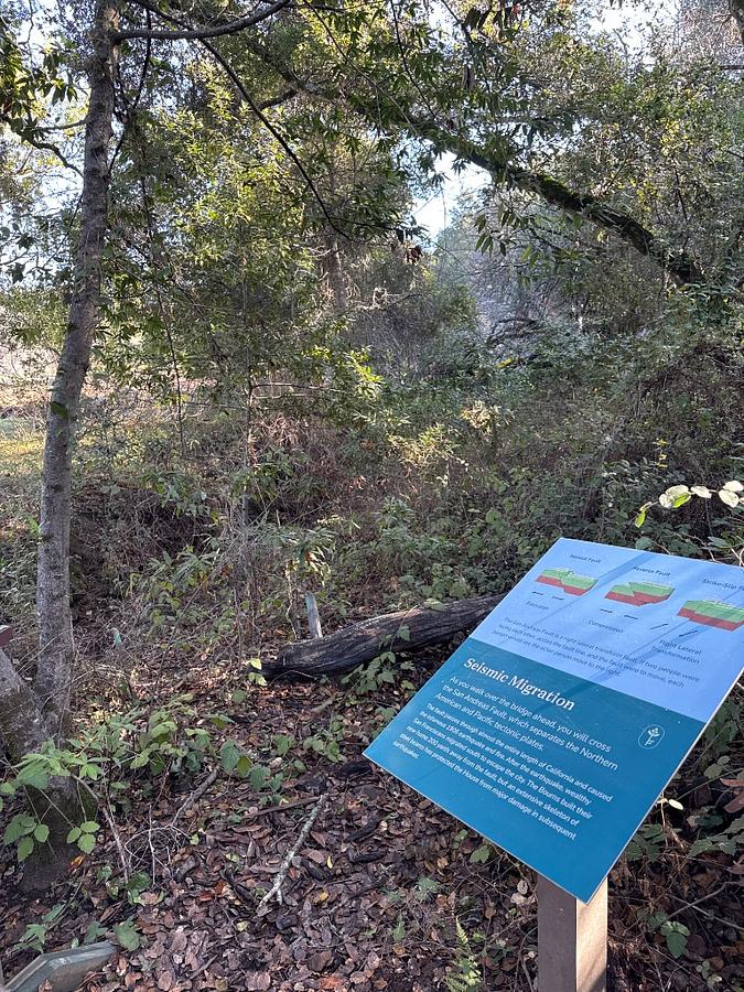 You’re standing in a spot that offers a subtle yet profound lesson in geology, as you’re right on the very edge of the San Andreas Fault, one of the most famous and active geological features in the world.