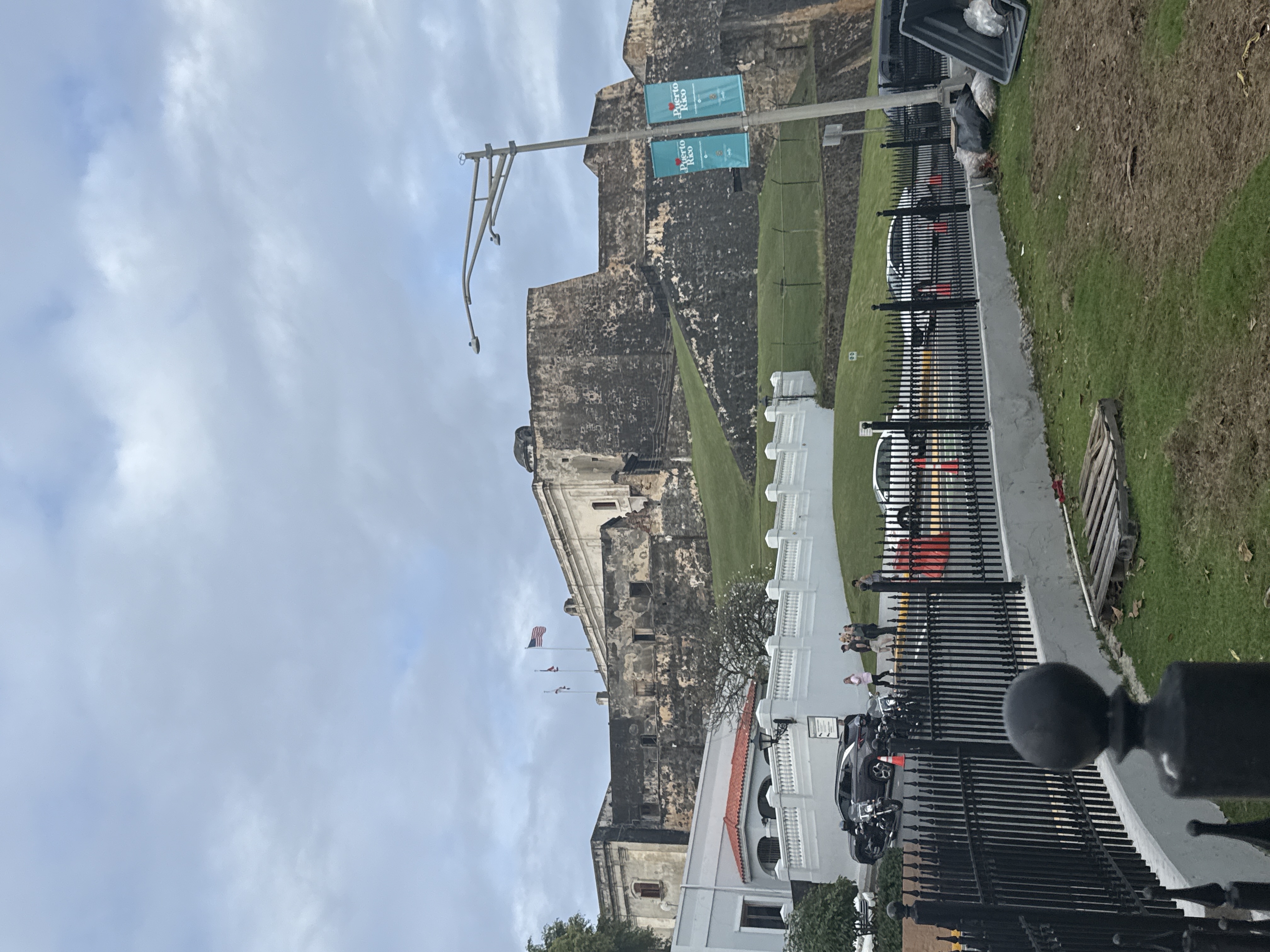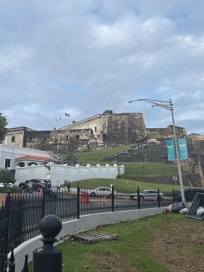 The massive structure is Castillo San Felipe del Morro, a citadel protecting Old San Juan since the 16th century. Construction began in 1539 by the Spanish Empire; its design evolved over 400 years to defend the entrance to the harbor.