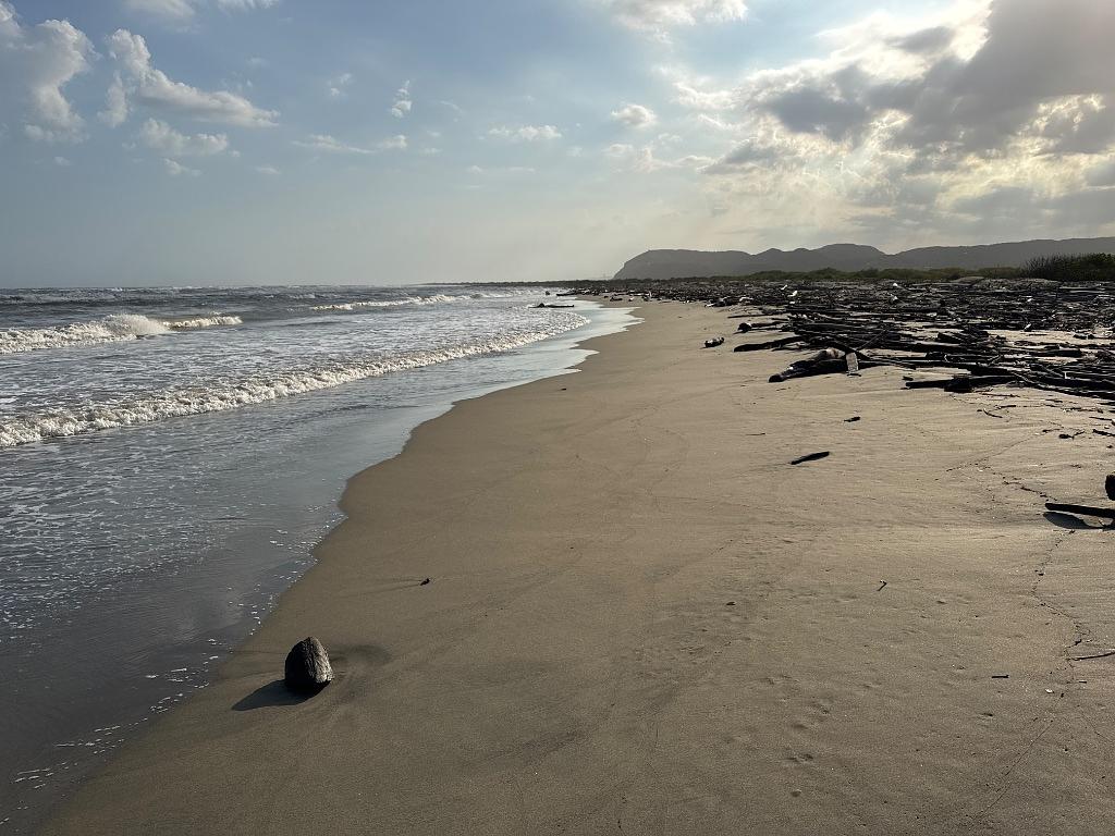 The beach at Puerto Velero often features a significant amount of driftwood, especially after strong currents or storms. This is common along many coastlines, but particularly noticeable in regions with dense vegetation near the sea. The driftwood here might include branches, roots, and even whole tree trunks carried down rivers and out to the ocean from inland areas, eventually washing ashore. While some see it as debris, driftwood plays an ecological role, providing shelter and nutrients for coastal ecosystems.